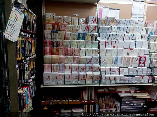 文具店一樓重點位置放滿卡片及毛筆,在日本書店只有賣書,跟台灣不大一樣!