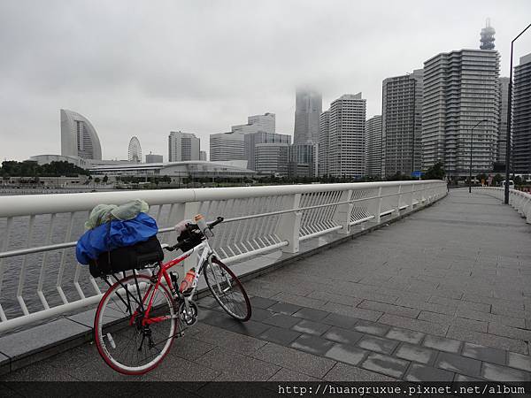 我往下一個都市前進,首先到達品川,這裡很明顯已經遠離東京,馬路很大卻不再擁擠,看到一條小街道"北馬場參通道",我轉進小巷參觀一下,其實只是一般商店街,我也能拿起相機猛拍了...往橫濱的路上,騎經一條大橋,中途我發現我居然騎在快車道,單車道在欄杆內側,汽車開得又快又急,而這條大橋還很長,我當下就靠著欄杆把單車扛過單車道,讓我有個安全的騎乘(一開始在日本騎車還很不習慣他們的單車動線,導致我常常需要回頭甚至扛車換車道