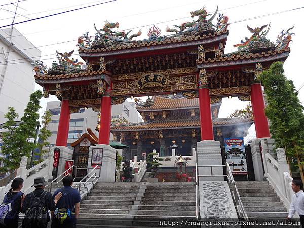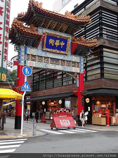,我又到達我的小目的地,悠閒的拍照欣賞建築,並且尋找橫濱中華街及山下公園,通常在都市是最容易迷路的,但在還好觀光區都會有旅遊指標給觀光客指引,由於我沒有申辦網路,這也迫使我迷路時必須開口向日本人問路,在路人指引下,我找到了中華街,中華街裡有關帝廟跟天后宮,蓋的都跟台灣一模一樣啦,頓時讓我想家了