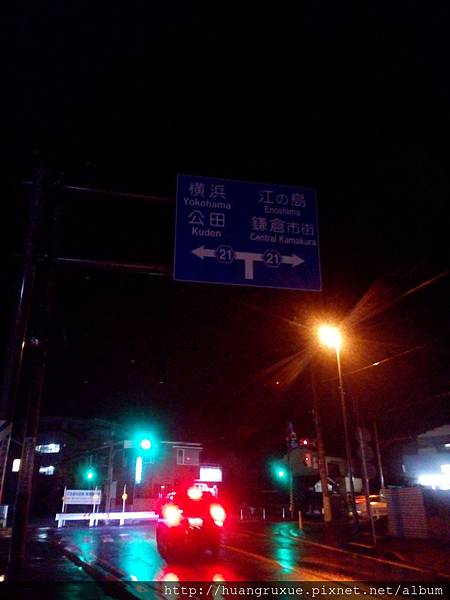 往鐮倉的路上,天色開始昏暗並持續下雨,對日本一點都沒概念的我,根本不知道鐮倉在山區,途中一直不確定方向感,騎得很擔心,正好遇到一位單車騎士,我向他問路,這位非常好心的車友居然要帶我走一段路,於是就一前一後共騎了一段路,其間他還會回頭注意我是否有跟上,真是非常yasashi(溫柔)~最後他向我指出往鐮倉的路線,我向他握手道謝後就獨自上路,心裡還在為遇到好人,快抵達目的地而開心的同時,我發現這一條陡上的路越來越小條,沒有分隔線,沒有路標,幾乎沒有車輛,而且越來越陡,心裡有一種迷路的感覺,這時約莫八點多...因為下雨又非常陡,我幾乎是用牽車步行的,這時候還遠方出現一間7-11,我趕緊Google定位,確定方向,果真是大迷路,再往回走的過程中也不順利,就這樣在榮區山坡路段卡了兩個小時,不過,還好在台灣常爬山,對郊區及夜晚熟悉,並不是太害怕,只是覺得疲累@@!一直到晚上九點多,我終於抵達鐮倉...為了尋找旅館,在小巷子繞了一會,鐮倉應該是我日本最熟悉的區域了吧!因為鐮倉鬧區不大,我在這邊幾乎把巷子走遍了N次,找到了一間旅館居然沒開,又髒又臭的我真的非常像流浪漢,我到了麥當勞用了我的晚餐+消夜,並且思索著下一步!在晚上11點多,我看到一間高級hotel,我決定進去問一下價錢,一晚要15000日圓