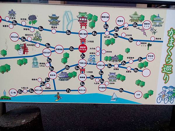 車站旁有一個漫畫版的單車路線指引,如果用步行的!真的會走的很累阿....