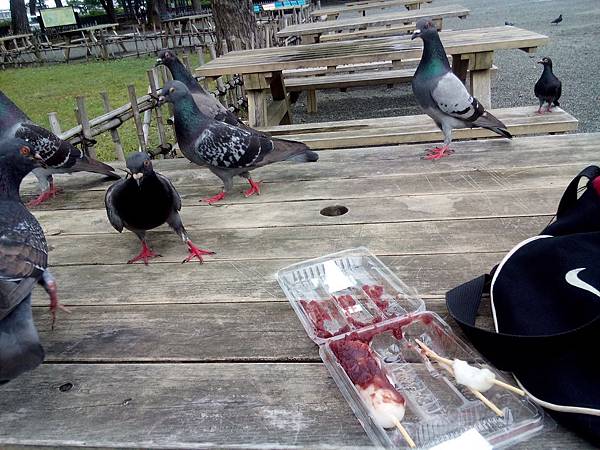 在小田原城公園吃紅豆丸子,日本的鴿子都好囂張喔!跟台灣的流浪狗差不多等級
