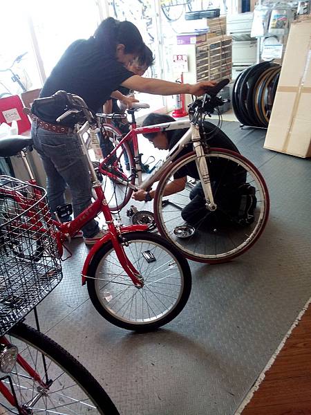 維修過程約耗時2小時,這段時間也讓我有時間參觀日本單車,日本單車多是主婦的通勤車,講求穩重,實用,但相對的重,跟台灣主流單車有很大差別,這有也有很多單車配件"made in Taiwan",台灣果真是單車大國,看到了真開心!![]()