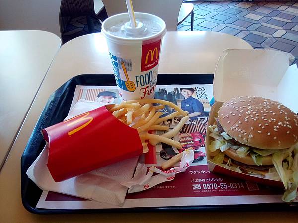 日本麥當勞,中午也有特價時段,這個套餐580日圓,非鬧區中午依舊客滿,不好意思霸佔位子太久