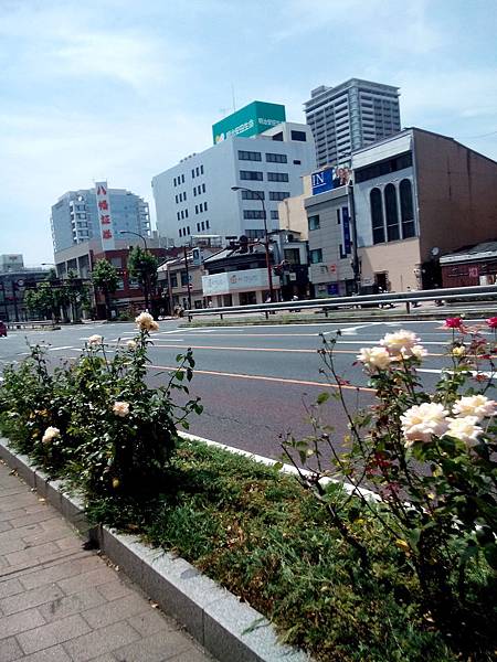 福山市是座玫瑰城?!很少看到城市街道種植玫瑰花當作裝飾的!玫瑰孤傲,好像在街頭不大適合!或是沒整理?!