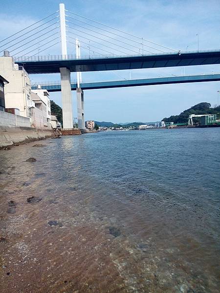 離開福山,由"山陽道"再往尾道(Onomichi)海岸線前進,在麥當勞小休息之後,下午感覺好多了,在尾道經過海灘,忽然想下去踩踩水,真幸運去海邊探險,才能知道日本海水也太乾淨了吧!尾道沙灘的沙是由大顆粒的黃色粗砂形成,35度的天氣踏踏海水真消暑.