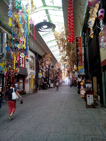 尾道商店街,配合夏季祭典路旁有裝飾,看起來很熱鬧