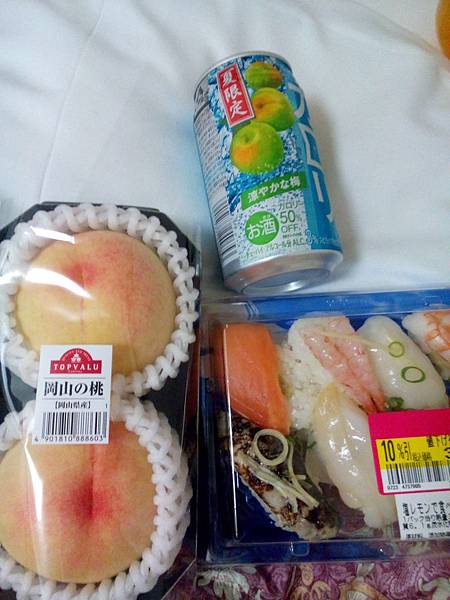 下午6點就抵達三原(mihara),很累就不想說話問路,硬生生繞了一大圈,最後還是靠著飯店幫忙找到便宜hotel,就在三原車站附近,順便逛了附近的"AEON"百貨公司(AEON是日本很大連鎖超市,甚至有自己的百貨公司,價位也較親民),晚餐買了岡山盛產的白桃(到日本必吃水蜜桃阿,比台灣便宜又好吃)