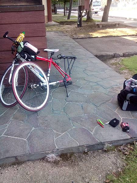 還好只是換胎,如果是複雜的問題,宮島應該沒單車店!單車旅行補胎,換胎是最基本的技能
