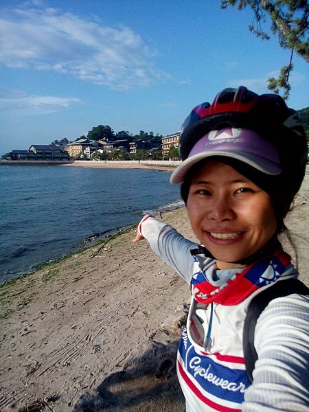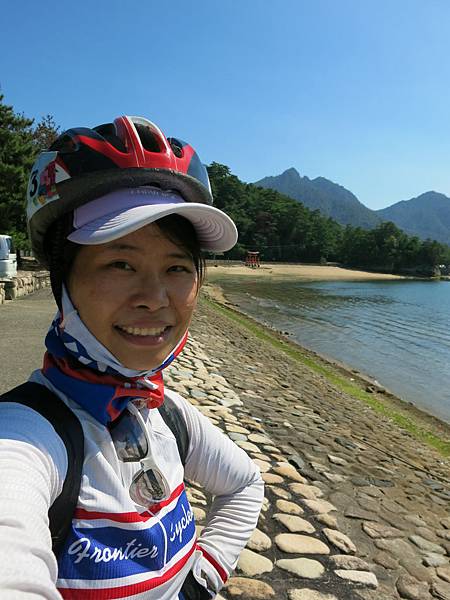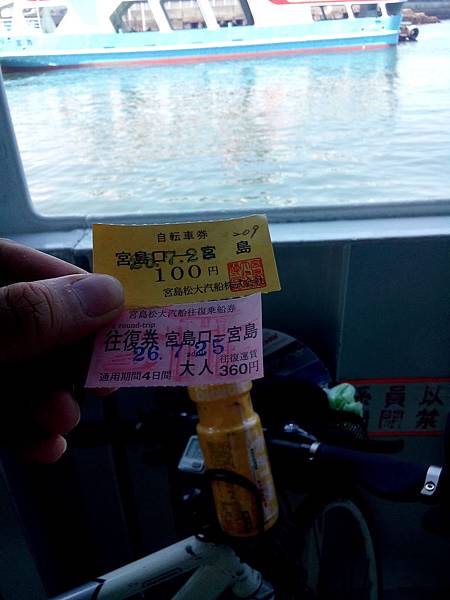 繼續沿海岸線前進,過了廿日市市(Hatsukaichi),終於看到遠方出現"宮島口渡輪船入口",人與車的來回船票是560日圓(人來回360,單車來回200),旅行中第一次要跟單車一起坐船,超興奮的,彩香跟我說宮島(Miyajimacho)很美,到底是甚麼樣的地方呢?!![]()