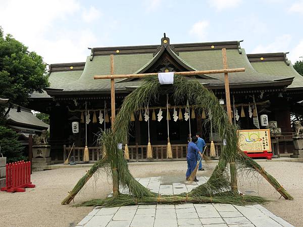 八坂神社本堂前的"茅輪",有像麻花捲一定的繞法,走完之後消災解厄喔!