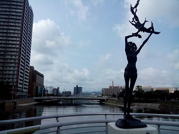 北九州的紫川旁,有個很有意境的銅像,這裡在往小倉城的路上,非常適合散步!