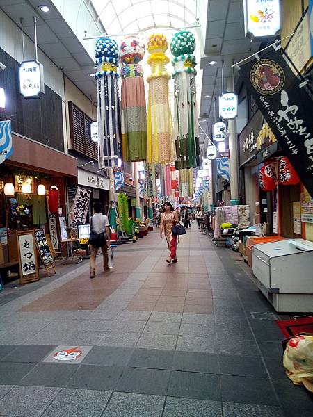 一進入福岡就到博多,往祇園區走去,有漂亮彩球的街道,旅館就在這裡!