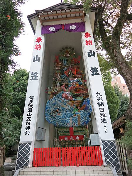 山笠(yamakasa)是福岡重要的祭典,只限男人參加扛"山車",又稱讓"男人成為男人的祭典",此山車通常展畢就會拆解,唯此山車就置於櫛田神社供民眾參觀!