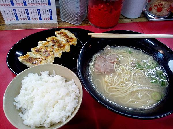 拉麵套餐要600日圓,拉麵很好吃,尤其是湯頭!但煎餃台灣好吃很多!