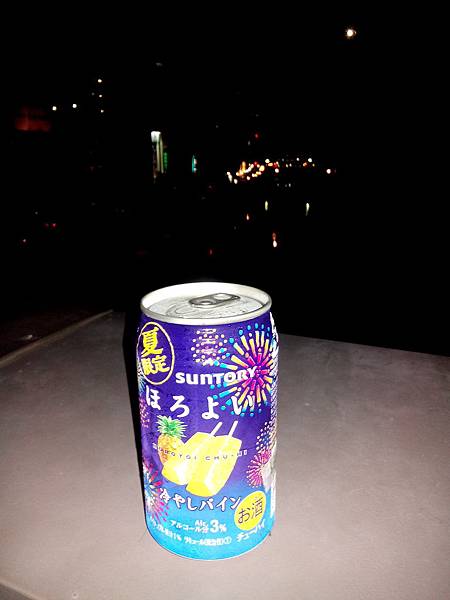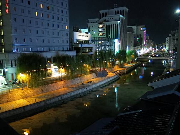 花宿頂樓夜景,那珂川有柳樹,加上微風吹來,一瓶啤酒,很美好的夜晚!