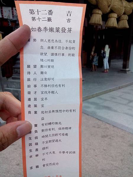 吉!!也不錯啦,旅行"注意即可",但姻緣"不宜期望太大"是怎樣?!厚.....