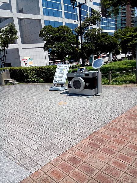好貼心的創意喔,在福岡塔前有一台照相機,讓你可以簡單地把整個福岡塔拍起來喔!!