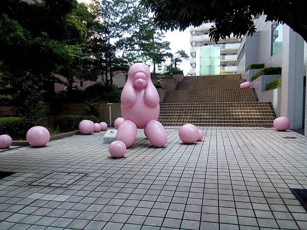 很漂亮的裝置藝術,散落一地的貴賓犬,變成粉紅色糖果氣球,超口愛!