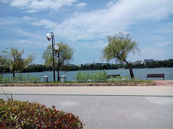 大濠公園的中央是內陸湖,湖中央有小橋道路分割,此湖是經過"填湖造地"後剩下1/2,還是好大喔!
