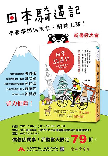 也因為一場特別的旅行,讓我真正開始寫作…最初的發想是日本單車旅行太酷了,無論如何一定要幫自己做個紀錄,彌補台灣環島沒留下回憶的遺憾,起初這個想法自己也覺得天方夜譚,難以啟齒怕被別人笑,朋友聽了也覺得我很愛作夢,但是仔細想想如果你做一件事都怕被別人笑,是自己沒信心?或只是隨口說說?如果認真要做,又何必在意別人的眼光,把這個包袱放下之後,我輕鬆多了!於是開始規劃我生平第一本書的內容~