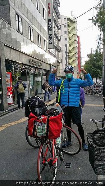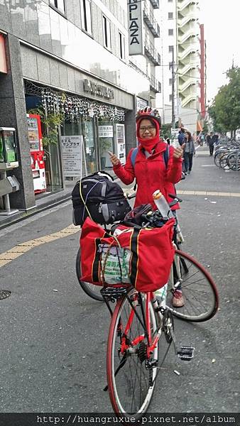 8點我們起身前行,遇到同旅館的台灣婦人,知道我們兩個小瘋子單車旅行,興奮的想要看我們的單車及旅行裝備,日本白天超冷的,即便沒穿外套還是要到門口跟我們道別,算是一早的小插曲