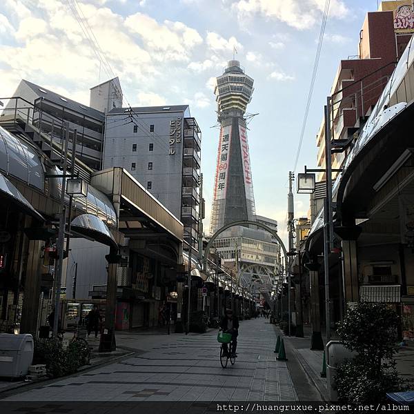 從另一個角度再看一下通天閣,現在大概8點,商街都還沒開門喔。