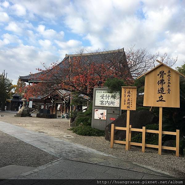 依著指示牌我們要到四天王寺之前,北鼻看到了一間很特別的寺廟"一心寺",提議去看看,這次行前我特別認真研究旅行景點,沒印象甚麼一心寺,但是自助旅行就是可以很隨興(這次也是北鼻第一次自助旅行,以往他的都是跟團到中國大陸),於是我就不破壞他的隨性,停好車我們一起探險吧!踏入大門前,我看到警衛看了我們一眼,眼神有點奇怪,這裡還蠻多遊客的?!再往裡面走了一點,原來這裡不是觀光的地方,這裡是墳場、納骨塔