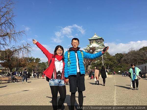 我們在大阪城,北鼻有拍照障礙,肢體很僵硬跟表情很怪,不過總是在慢慢進步中,哈哈哈!![]()