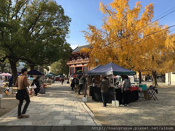!我們稍微繞一下四天王寺周圍,一起同意這裡是指要來一次的地方,因為我仰慕聖德太子所以特別想來,這裡的商業氣息不像淺草,是更肅穆的感覺,但還好今天周日有舉辦假日市集,倒是讓他活力不少!![]()